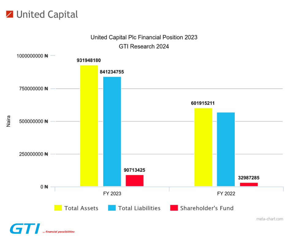 United Capital’s total liabilities grew by 48% year-on-year to N841.23 billion in FY 2023 compared to N568.93 billion in FY 2022.